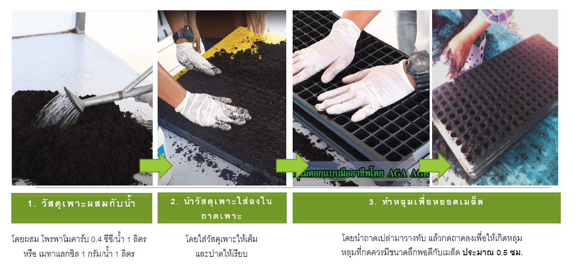 แปลงหน้ากว้า 1.20 เมตร สูง 30 ซม. ร่องแปลง 50-70 ซม. (ง่ายต่อการเก็บเกี่ยว)