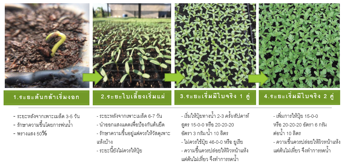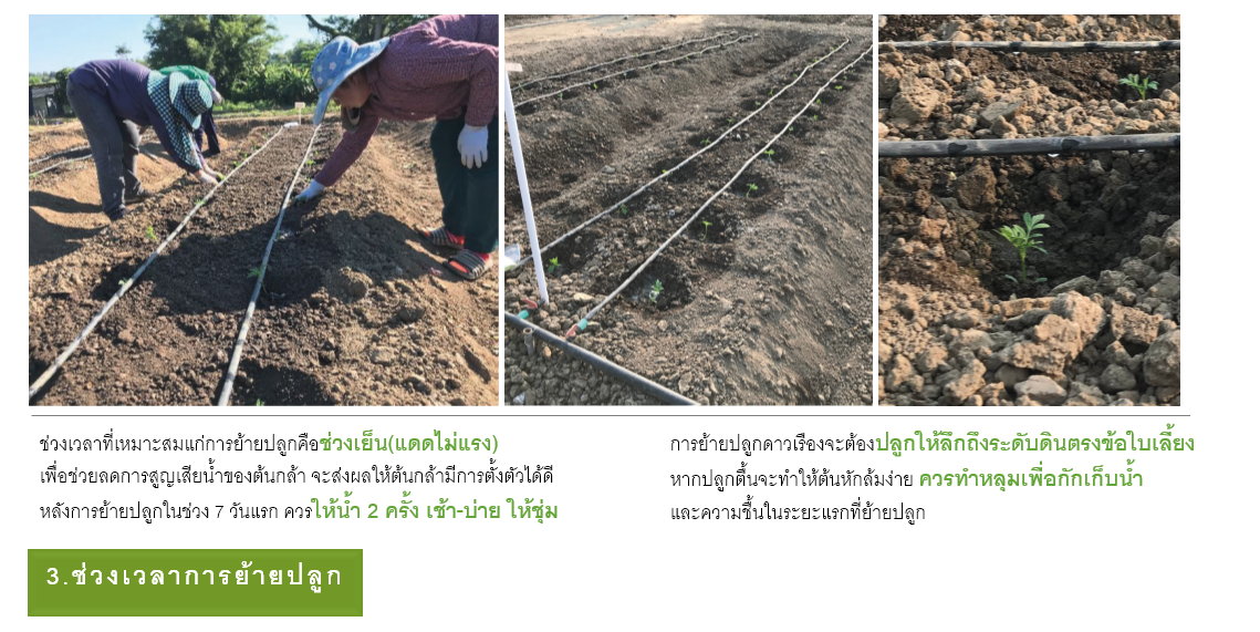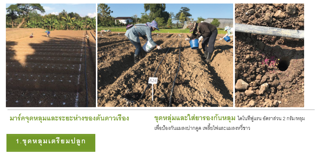 ระยะปลูก 40 * 40 ซม. ฤดูหนาวและฤดูร้อน แนะนำให้ปลูกแถวคู่จะให้ผลดีเนื่องจากแถวคู่จะช่วยเก็บความชื้นได้ดีกว่าแถวเดี่ยว