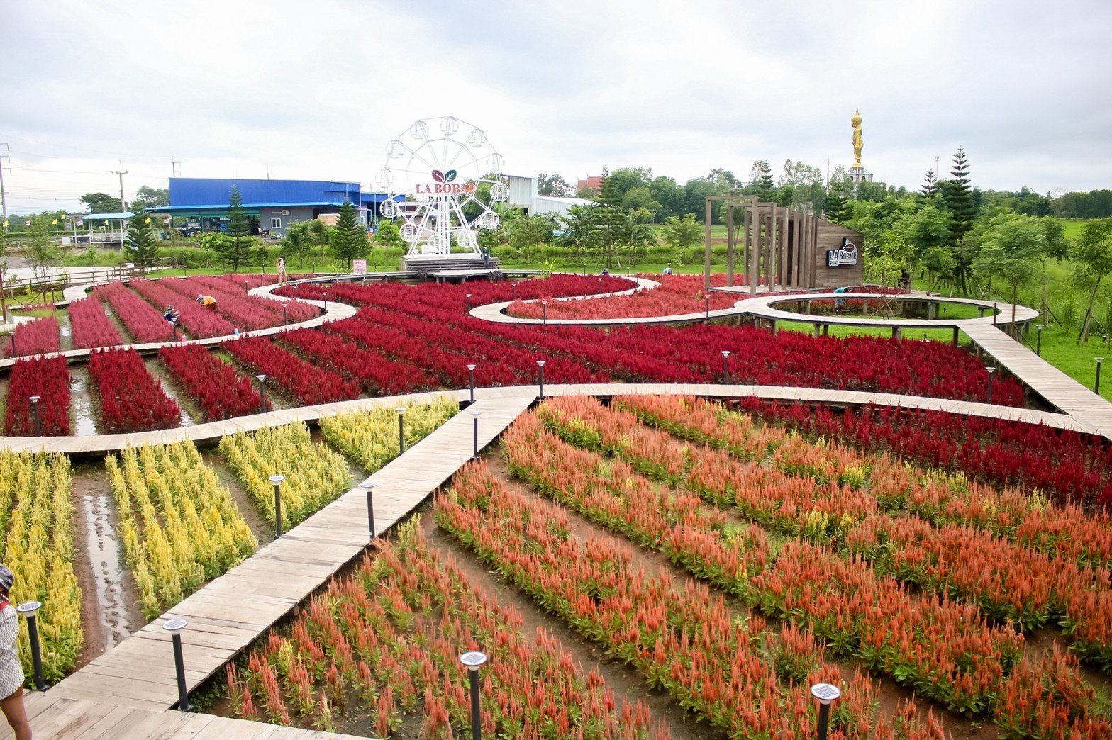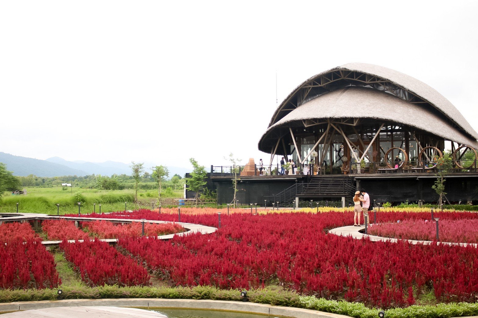 บรรยากาศเต็มไปด้วยความสวยงามของทุ่งดอก Celosia Century หรือ ดอกสร้อยไก่ สายพันธุ์เซ็นจูรี่ ที่ปลูกเป็นทุ่งดอกไม้คอยต้อนรับทุกท่าน มีขนาดใหญ่และสวยงามเป็นอย่างมาก ถือว่าเป็นแลนมาร์คที่สะกดใจและชวนหลงใหลได้เป็นอย่างดี