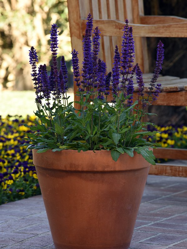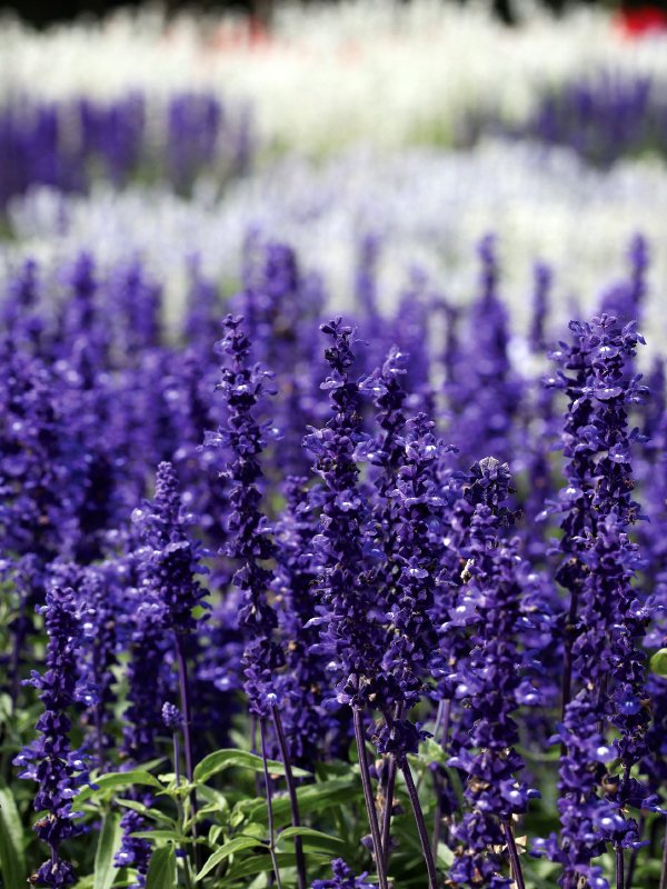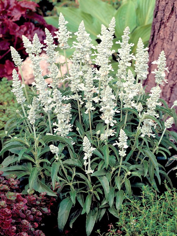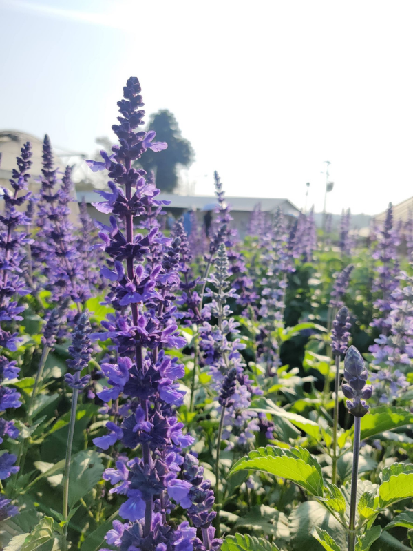 เป็นซัลเวียกลุ่มสีดอกโทน สีน้ำเงิน-ม่วง ขาว ออกดอกเป็นช่อแน่นเรียวยาว ออกดอกเร็ว ต้นสูงสม่ำเสมอ ทนต่ออากาศร้อน และฝนได้ดีกว่าซัลเวียกลุ่มอื่น