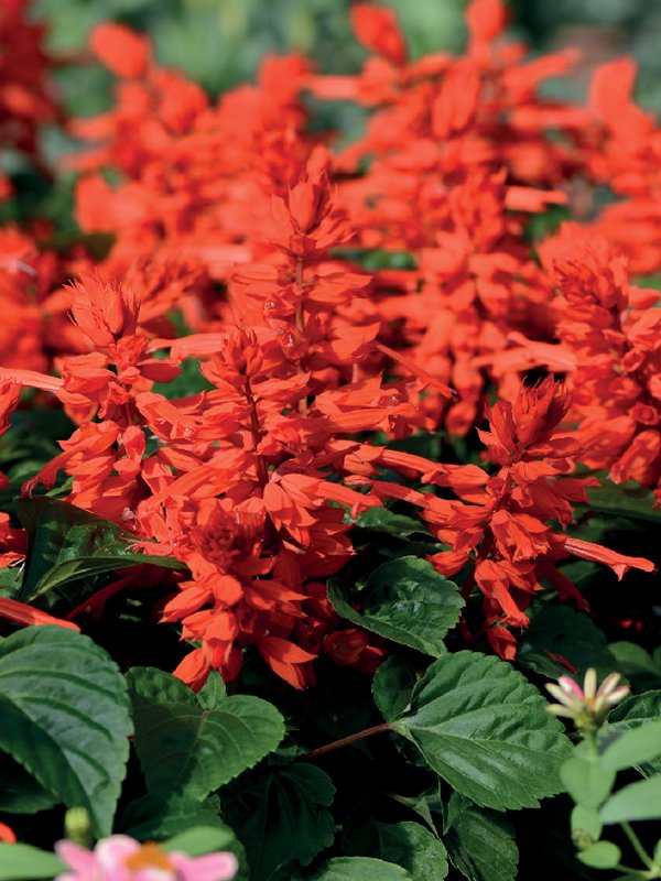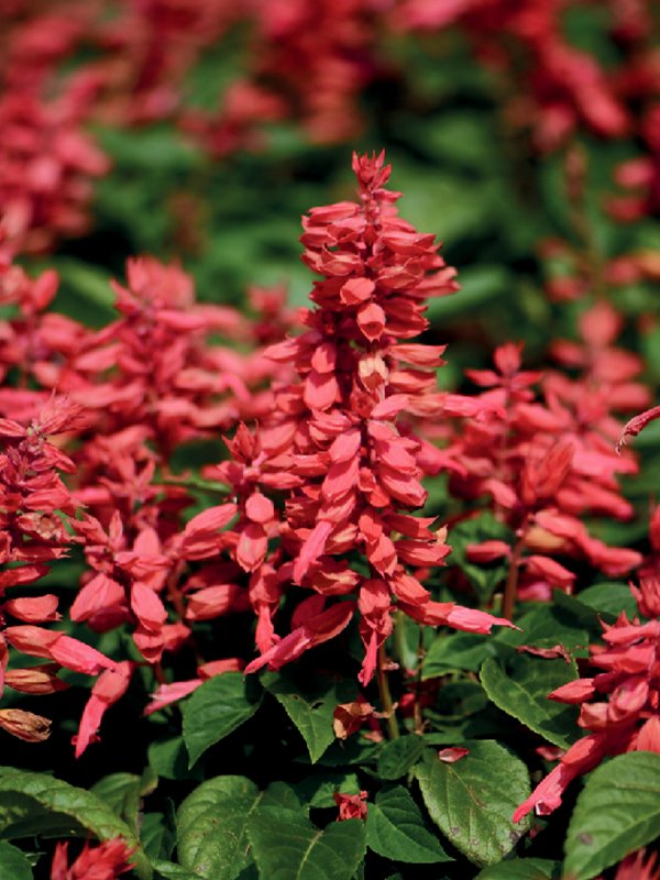 ซัลเวียสีแดงสดมากที่สุด ช่อดอกแน่น เป็นพันธุ์นิยมสำหรับปลูกเป็นไม้กระถางหรือประดับแปลง
