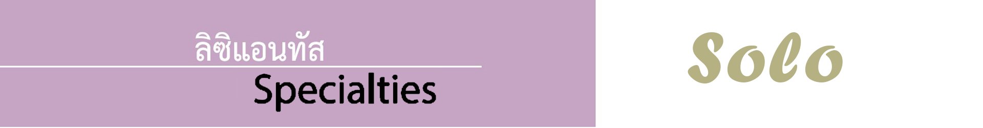 Solo โซโล เป็นลิซิแอนทัสดอกชั้นเดียว กลีบดอกหนา แข็ง บานเป็นรูปถ้วย กลีบจะตั้งตรงไม่แบะออก ไม่หลุดร่วงง่าย ทำให้ดูสดอยู่เสมอ ลำต้นหนา เขียวเข้ม แข็งแรง ให้ดอกดก